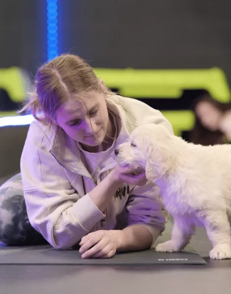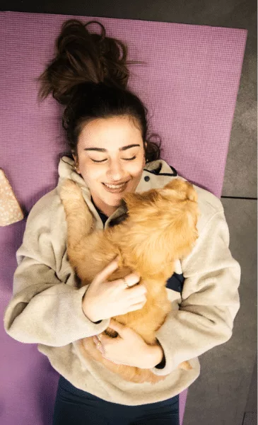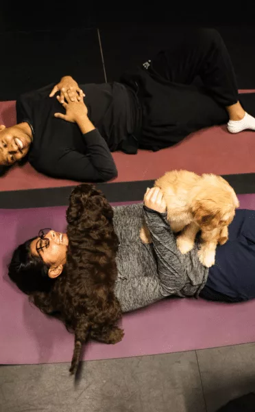 Expect stress to melt away. The combination of light movement, laughter, and puppy cuddles can boost your mood, calm your nervous system, and leave you feeling recharged. It’s not just good for your body, it’s powerful self-care for the soul